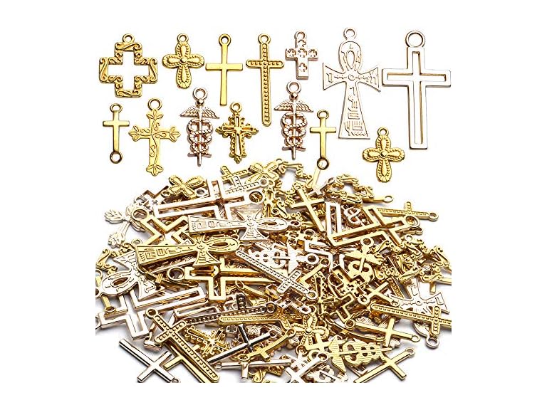 - RANDOM MIXED CROSS PENDANTS: You will get 100 gram of mixed golden cross charms. These charms are sending by random, please note that you may not receive every style shown on the picture.