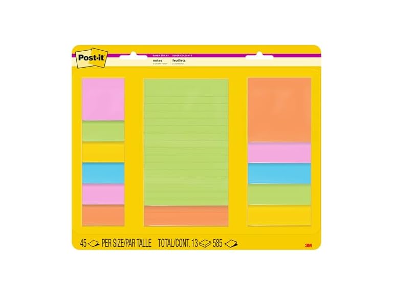 Post-it Super Sticky Notes, Assorted Sizes, 13 Pads