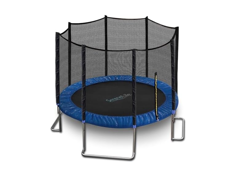 - (1) SereneLife 8/10/12 FT Outdoor Recreational Backyard Stable, Strong Heavy Duty Trampoline with Safety Enclosure Net, AntiRust Coating, Kids and Adults, Spring Cover Padding