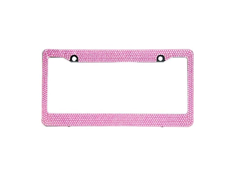 - (1) BLVD-LPF OBEY YOUR LUXURY Light Pink Crystal Rhinestone License Plate ABS Chrome Frame with Crystal Screw Caps - 1 Frame