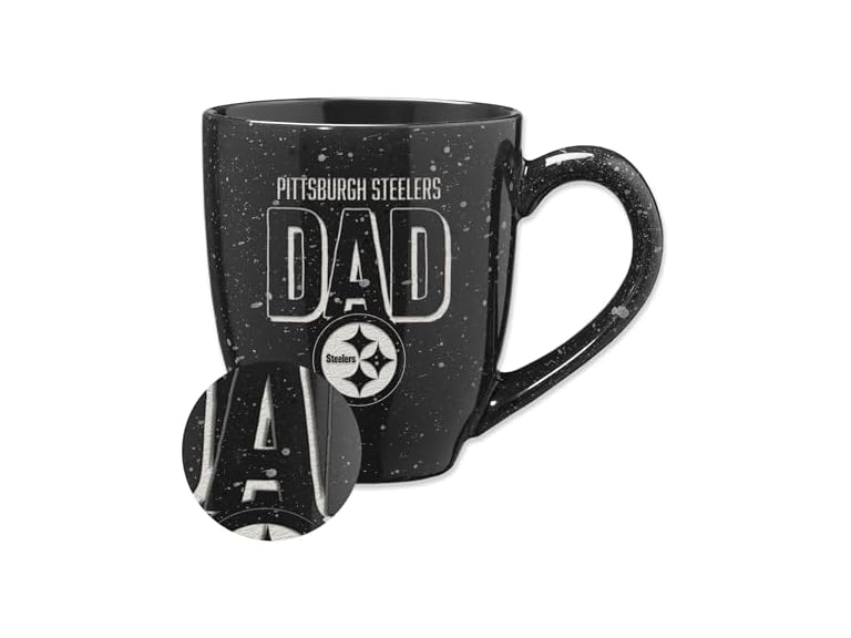 - (1) Rico Industries NFL Football Pittsburgh Steelers Dad Black 16 oz Team Color Laser Engraved Speckled Ceramic Coffee Mug