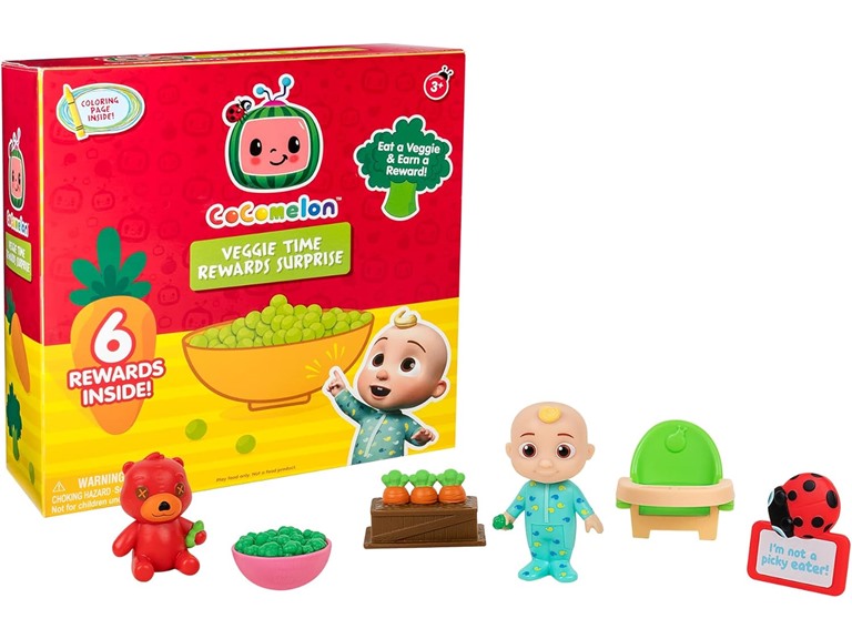 - COCOMELON INSPIRED The Veggie Time Rewards Surprise features JJ and five accessories inspired by the hit children’s show, CoComelon.