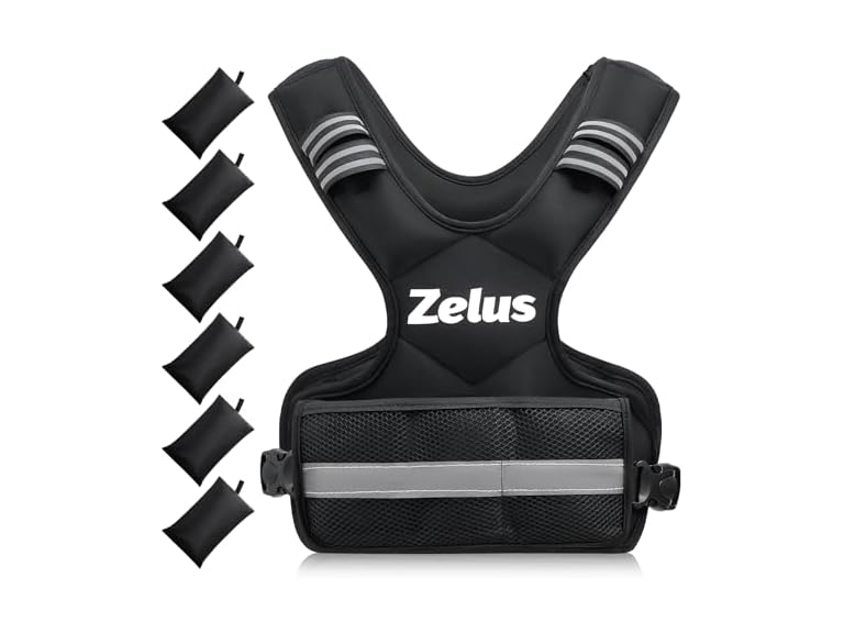- ADJUSTABLE WEIGHT VEST: This one-size-fits-most exercise vest by Zelus weighs in at 4 pounds by itself but reaches up to 10 thanks to the included six 1 pound iron sand weight bags, allowing variable low impact resistance that strengthens your core and endurance no matter your exercise routine