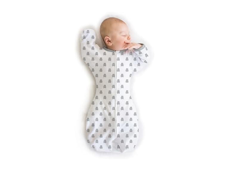 - (1) Amazing Baby Transitional Swaddle Sack, Arms Up Half-Length Sleeves & Mitten Cuffs, Swaddle for Newborn Transition to Baby Sleep Sack Wearable Blanket, Small, 0-3 month, 6-14 lb, Sterling Tiny Bear