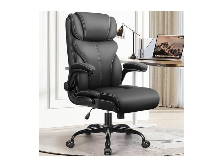 - Flip-up Armrests& Adjustable Functions: Flexible adjustable height from 43 to 47 inches and 90-120° tilt adjustment function, making the desk chair suitable for your various sitting positions and activities such as working, reading, and relaxing. The space-saving 90° flip-up armrests can relieve hand pressure while you work/rest.
