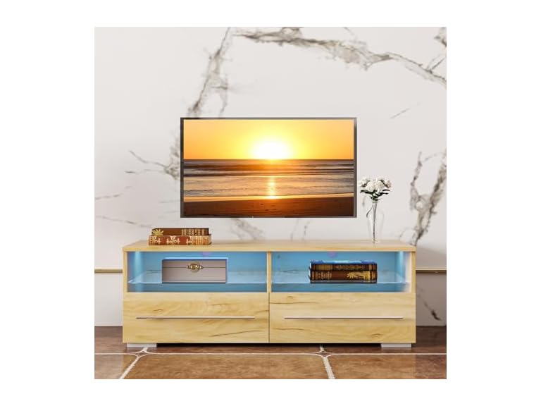 - 【TV Stand with LED Lights】 Our LED TV cabinet comes with a built-in adjustable LED system featuring 16 colors and 4 color flashing modes. Create a vibrant and colorful atmosphere in your home, adding a dash of excitement and beauty to your entertainment center.