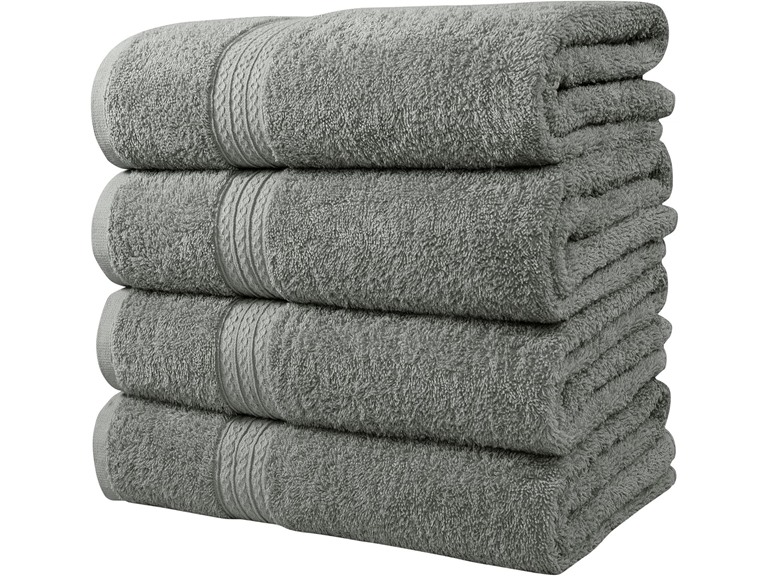 - PACK CONTAINS: These packs of 4 bath towels - plenty of room for comfortable lounging after a refreshing shower or relaxing soak. All hems of our bath towels for bathroom are double-stitched for extra durability and long-life.