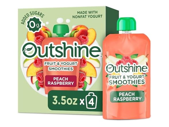 - SIP & SHINE Snack brighter with Outshine Fruit & Yogurt Smoothies - Peach Raspberry. Made with 0g added sugars, no GMO ingredients, and no artificial colors or flavors, you can feel good about your snack time SNAP and EBT item in eligible states
