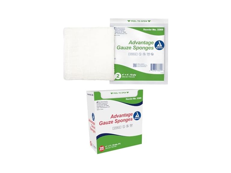 - Dynarex Advantage Woven Gauze Sponges 4" x 4" - Sterile 12-Ply Absorbent Cotton Gauze Pads for Wound Dressing - 25-Count Box