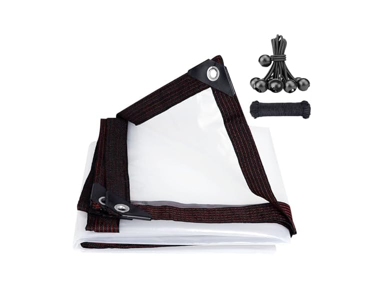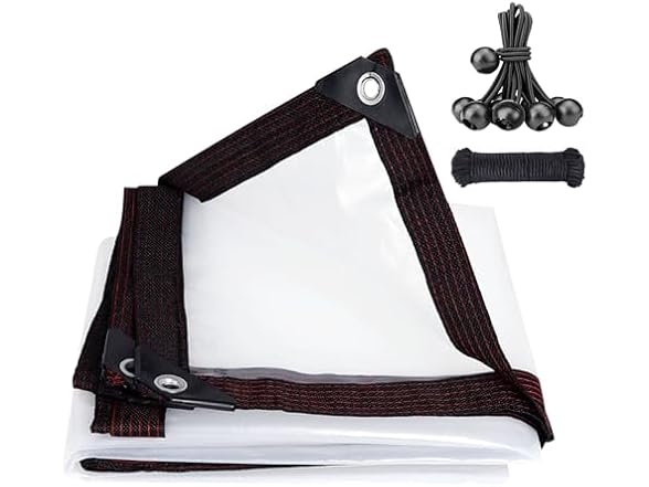- 【Premium materials】Transparent tarpaulin is made high-quality Polyethylene (PE)material, high light transmittance, rot-resistant. Cover tarpaulin easy to clean and has good weather resistance,temperature resistance,Transparent tarpaulin can also serve as wind protection,dust protection,rain protection,Can be used in several seasons