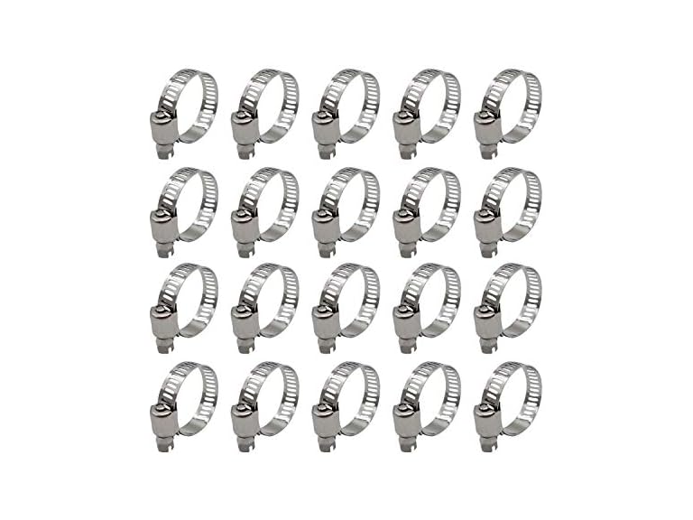 - PREMIUM HIGH QUALITY – Worm Gear Hose Clamps are fully made in 304 series stainless steel for band, housing and 1/4" hex head. The whole stainless steel construction provides solid and strong performance in anti-corrosion, water-proofing, durability and long life-cycles
