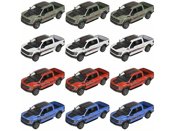 - 5" Die-Cast Pull Back 2022 Ford F-150 Raptor Livery Edition – Assorted Colors - 12 Count