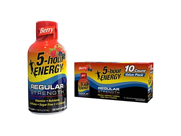 - (1) 5-hour ENERGY Shot, Regular Strength Berry, 1.93 oz, 10 Pack