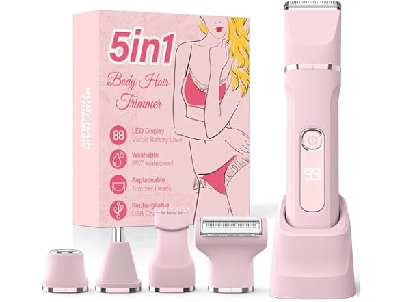 - 5-in-1 Trimmer: this razors for women features 5 interchangeable heads for various areas, including facial hair, nose hair, leg hair, underarm hair, bikini line, and women's sensitive areas. From facial fuzz to body hair removal, one device meets all your grooming needs.