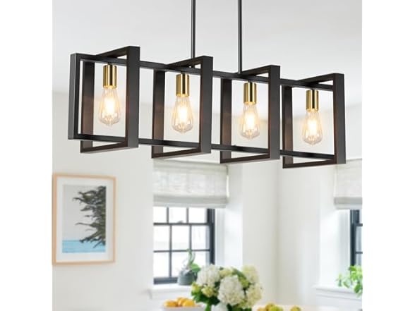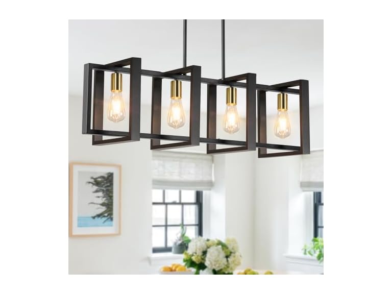 - Modern Pendant Lights For Dining Room: This 4-Light kitchen island light combined premium natural wood with black gold metal frames, adding endless modern/farmhouse/rustic/retro/vintage/industrial chic over your dining table or pool table. The solid but minimalist rectangular structure shaped a high-end mid century pendant ceiling light among your kitchen dining room living room. The simple open design makes it no difficult to clean the chandelier at any time. Excellent additions for your home