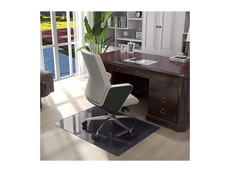- ★【HIGH-GRADE TEMPERED GLASS CHAIR MAT】:The glass office chair mat measures 36x48 inches,and is made of 100% premium tempered glass. Our high quality glass chair mat is suitable for all flooring types including carpet, hardwood, tile and rugs! It's the perfect way to protect your floors from damage and allow you to glide smoothly on your office chair.