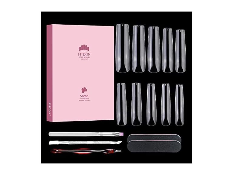 - (1) FITDON 500pcs Extra Long Square Nail Tips, FITDON XXL Long Square Press on Nails Clear Full Cover Acrylic False Nail for Nail Salons and DIY Nail Art