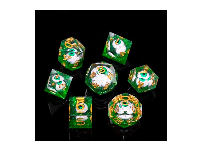 - (1) DND-Blood Eyes & Green,DND Dice Set Handmade 7 Accessories Sharp Edge Dice for Dungeons and Dragons TTRPG Games, Multi-Sided RPG Polyhedral Resin Sharp Edge Dice Roleplaying Games