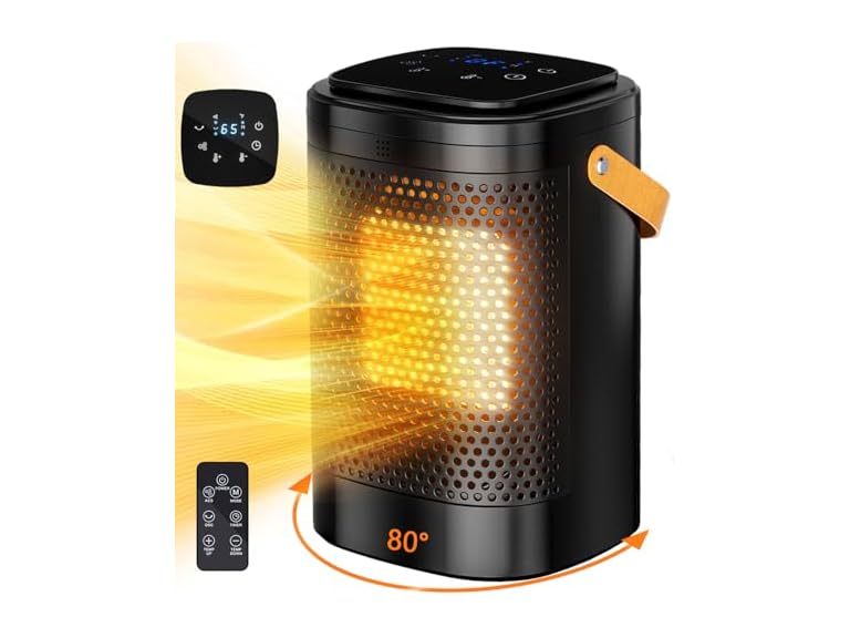 - Compact and Powerful: This portable heater build in carry handle and powerful heat that fits everywhere. providing precise and comfortable warmth. The 80° wide-angle oscillation covers the entire area, offering widespread heat for your bedroom, garage, basement, office, desk, and more