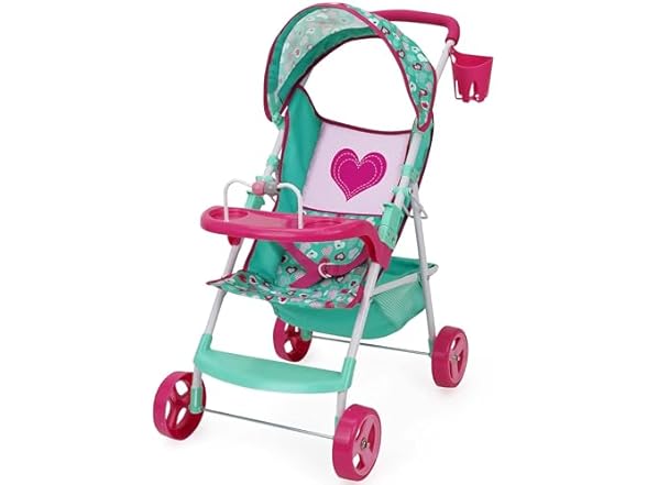 - (1) 509 Crew: Mint Heart - Sarah Doll Stroller - Hot Pink & Green, Cup Holder, Tray Play, Storage Basket, Folding Accessory, Pretend Play Toy, Kids 3+