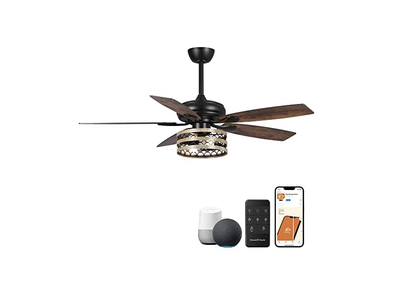 - SMART CEILING FANS WITH LIGHTS: Smart ceiling fan and dimmable light fixture 2 in 1, farmhouse and vintage style, equipped with powerful and whisper-quiet motor, dual finish fan blades - withered wood on side A/ rough pine on side B. Ideal for living room, bedroom, dining room, covered patios.