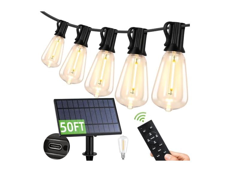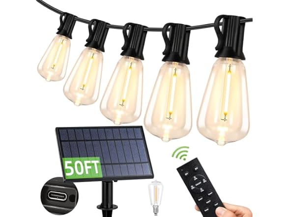 - Significantly Reduce Electricity Bills - Our solar Edison lights outdoor are designed to be energy efficient, helping you save over 90% on your electricity bills. With each ST38 LED bulb consumes only 1 watt, our string lights provide significant energy savings compared to traditional bulbs. This 50ft solar outdoor string lights with 25 sockets is perfect for illuminating and decorating your yard or garden. We even include an extra replacement bulb for your convenience.