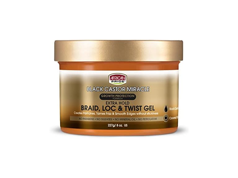 - PROVEN HAIR CARE - African Pride Black Castor Miracle Extra Hold Braid, Loc, & Twist Gel smooths frizz & flyaways while boosting shine for longer lasting styles. This professional product leaves braids, locs & twists neat & controlled.