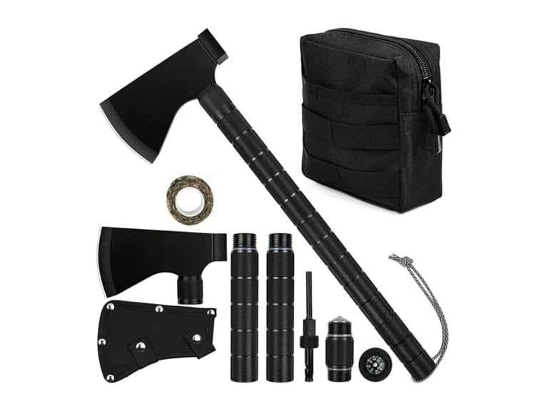 - (1) KISIQI Camping Axe with Sheath Folding is a Multifunctional Survival Equipment Suitable for Hiking, Backpacking, Emergency situations, Hunting, etc.Black.