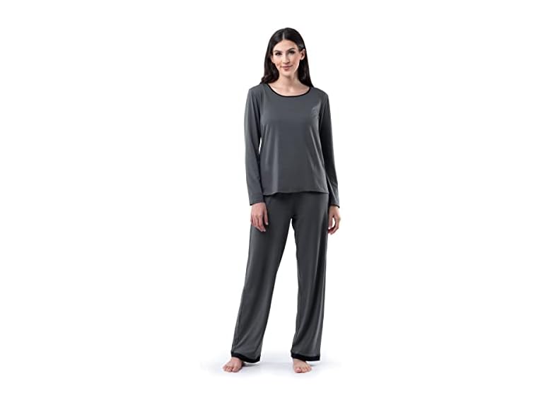 - (1) Fruit of the Loom Women's Long Sleeve Tee and Pant 2 Piece Sleep Set, Grey, Medium