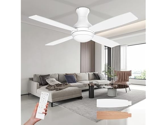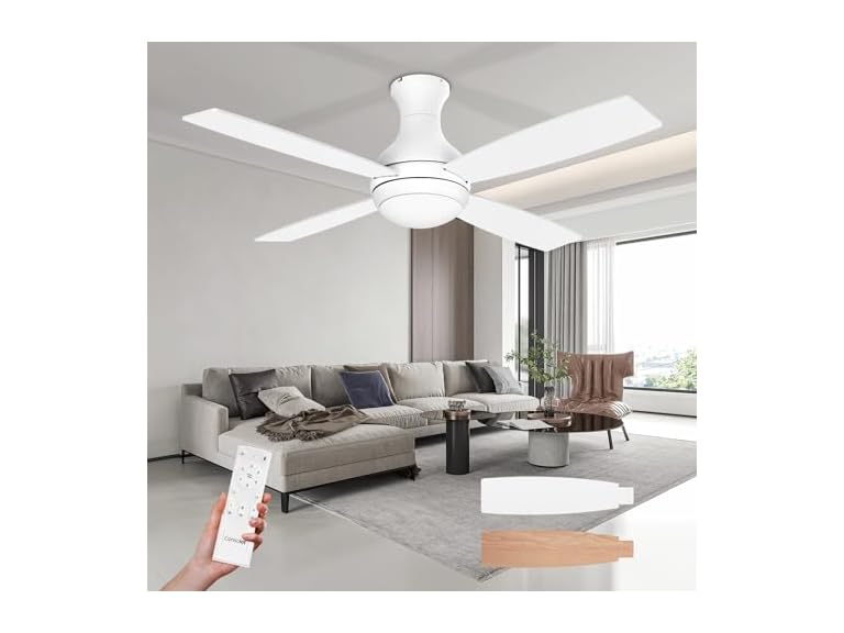 - Consciot 52 inch Ceiling Fans with Lights Remote, Modern Ceiling Fan with Light, Dimmable 3 CCT, DC Motor, Easy Installation, Flush Mount for Bedroom Patio Living Room Kitchen Portico, Modern White