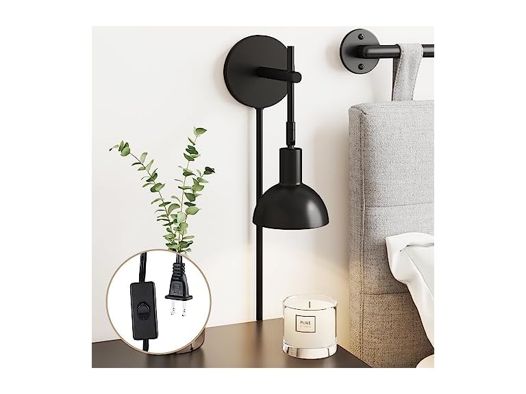 - Nathan James Tamlin Wall Light Fixture, Wall Mounted 1-Light Lamp, Plugin Sconce with On/Off Switch for Living Room, Reading Nook or Bedroom, Matte Black