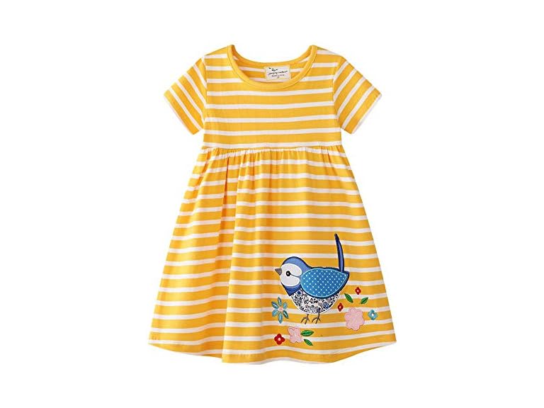 - (1) JYXindzkj Summer Baby Girl Cotton Short Sleeve Stripe Lattice Dress Short Skirt (2T Height,80cm)