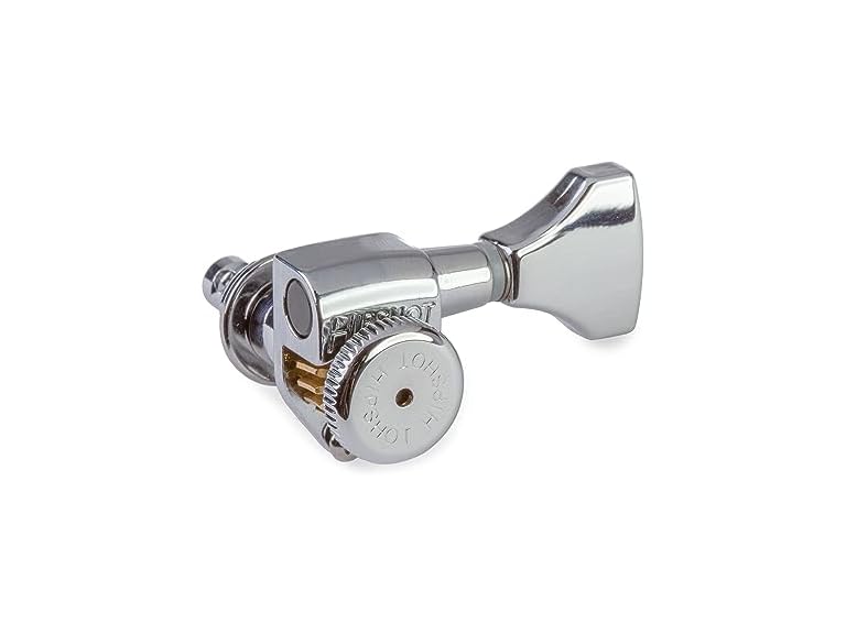 Hipshot Grip-Lock Open Gear 3+3 Tuner Upgrade Kit Install modern open gear locking tuners without drilling! Give your 3+3 headstock a much-needed makeover with the Hipshot Tuner Upgrade Kit. You can install them on any headstock and tuner spacing, without drilling! Instead of your old, time consuming string change ritual, simply pull the string through the hole and tighten the thumbwheel. A small pin inside the string post will grip your string and lock it in place for worry free tuning! The patented Universal Mount Plate (UMP) included free in this kit means your tuners will retrofit without drilling or screwing. The special tabs in the plate securely hold your tuning machines in place to make install a breeze! Grip-Lock pin and thumb wheel system 18:1 tuning ratio for super fine adjustment Compatible with 13/32" (10mm) pegholes String post hole fits strings up to 0.060" Set of 6 includes mounting screws, threaded bushings, and washers Cast housing Also available for 6-in-line pegheads.