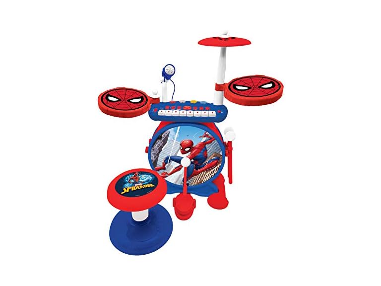 - (1) Lexibook, Spider-Man, Electronic Set for Children, Musical Toy Game, Realistic Drum Sound, 8-Keys Keyboard, MP3 Plug, seat Included, Blue/red, K610SP