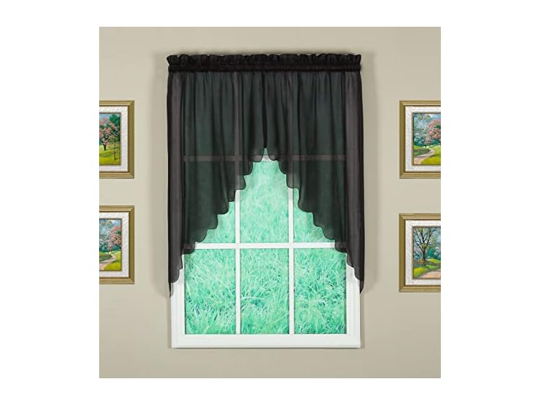 - engineered with scalloped edges on swag pair 38", for top treatment, use Valance 14" or Fan Insert as insert for toppers, add more valance or fan inserts for wide windows.