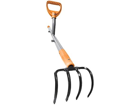 - ErgieShovel 54" Ergonomic Steel Garden Cultivator w/ D Grip Handle, 4 Tine Head Lawn Tool for Yard Work, Soil Aeration, & Weeding, Orange - ERG-CLTV45