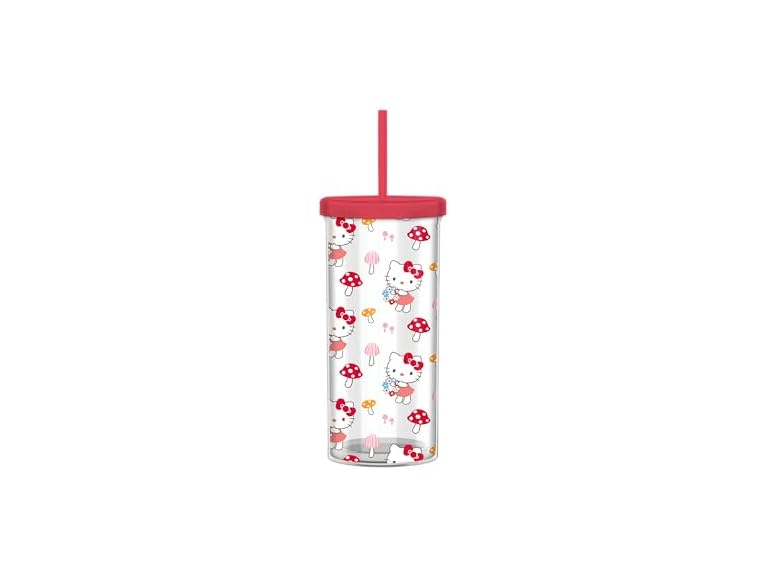 - (1) Silver Buffalo Sanrio Hello Kitty Mushroom Plastic Tall Cold Cup with Lid and Straw, 20 Ounces
