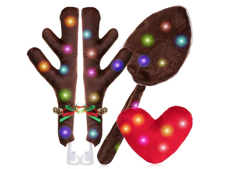 - ► EASY TO USE- The Zone Tech Christmas Reindeer Antlers Car Decorations is easy to install, each brown plush antlers comes with the clip allows them to easily attach above your vehicles front door windows, the heart shape nose fastens to the front grille of the car, for the tail clip tie it in the trunk of your car.
