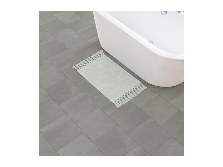 - (1) French Connection Nellore Bathroom Rug, Woven and Beaded, 17" x 28", Light Blue