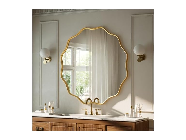 - Easy to Clean: Ideal for areas such as bathrooms. Simply wipe with a soft cloth to maintain crystal clarity and a flawless reflection every time. Let this wavy scalloped round bathroom mirror enhance the decorative look of your master bathrooms with double vanities
