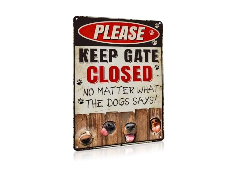 - ⚠️ DURABLE AND RUST-FREE: Made from high-quality, rust-free aluminum, this keep gate closed sign dogs ensures long-lasting durability and reliability for both indoor and outdoor use. Perfect as a dog sign for fence or yard, it withstands all weather conditions without fading, making it a great addition to any property.