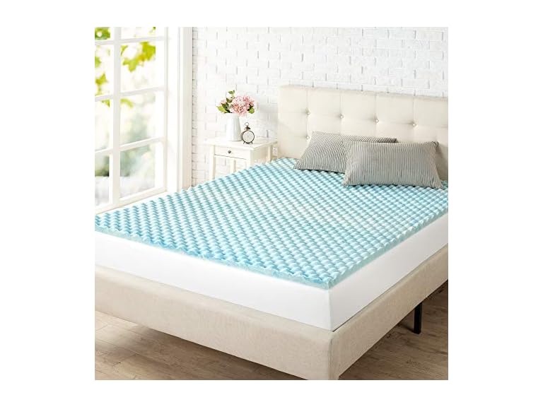 - (1) ZINUS 1.5 Inch Swirl Gel Cooling Memory Foam Mattress Topper, Cooling Airflow Design, CertiPUR-US Certified, Queen