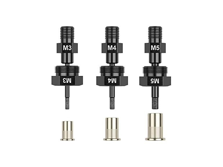- Metric Rivet Nut Mandrel and rivet nut Set: Suitable for Beaspire rivet nut adapter kit, the replacement set contains 1 x M3, 1 x M4, 1 x M5 mandrel kits and 3 x rivet nuts M3、M4、M5 (Electric drill and rivet nut adapter not included)