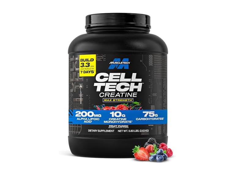 - Ultimate Lean Muscle-Activating Creatine Formula: MuscleTech Cell-Tech is a scientifically engineered, third-generation creatine formula featuring a clinically validated blend of creatine monohydrate and carbohydrates. Fruit Punch flavor. 56 scoops.
