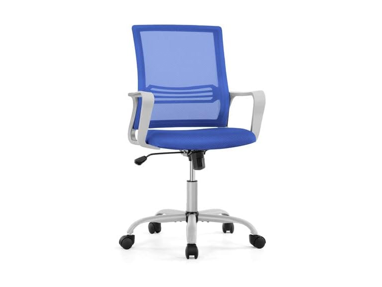 - (1) OLIXIS Ergonomic Home Office Chair - Rolling Desk with Lumbar Support & Armrest, Height Adjustable Breathable Mesh Chair, Mid Back Executive Task Padded Seat Tilt Function, Blue, FC914BU