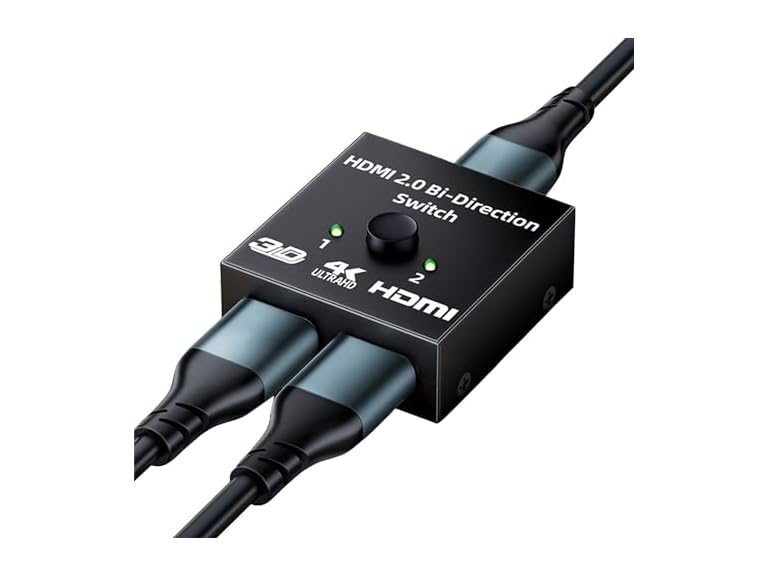 - 🌟【Bi-directional HDMI Switcher】:Made of Solid Aluminum Alloy construction, this durable HDMI bi-directional splitter helps you connect two HDMI sources to one HDMI display(HDMI Switch 2 in 1 out); or one HDMI source to toggle between two HDMI displays(HDMI Splitter 1 in 2 out). Tip: 2 displays cannot work simultaneously.