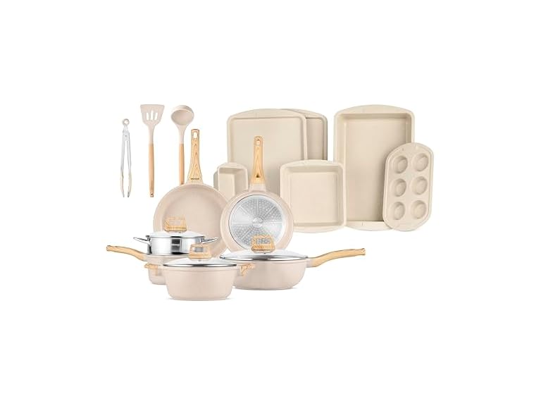 - (1) Bakken-Swiss 20-Piece Kitchen Cookware Set – Granite Non-Stick – Eco-Friendly – for All Stoves & Oven-Safe