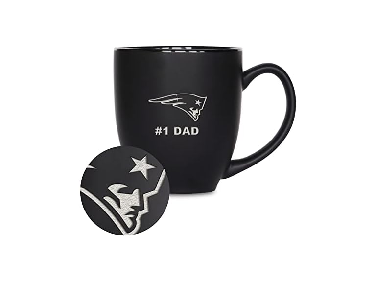 - (1) Rico Industries NFL Football New England Patriots #1 Dad 15oz Laser Engraved Matte Black Ceramic Bistro Mug - for Hot or Cold Drinks
