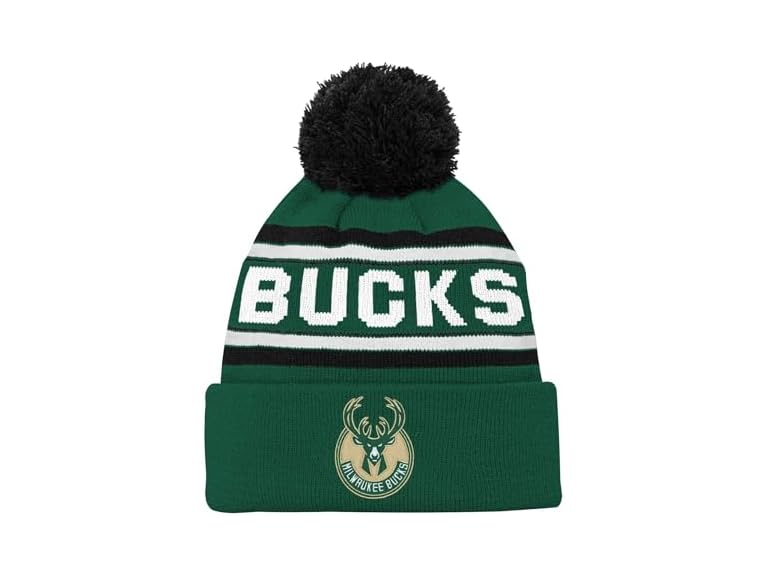 - (1) Outerstuff NBA Kids Youth 8-20 Officially Licensed Primary Logo Sport Knit Cuffed Cold Weather Pom Beanie Hat (US, Alpha, One Size, Milwaukee Bucks)