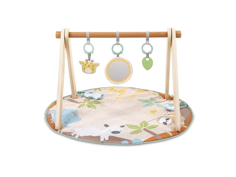 - Baby will love the way this A-Frame wood toy bar and gym surrounds them with entertainment! You'll love the way it's easy to put together, fits seamlessly into any modern home, and helps baby work on multiple stages of development, all from your living room floor.